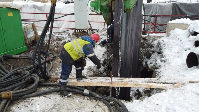 Извлечение шпунтовых ограждений при строительстве спортивного комплекса.